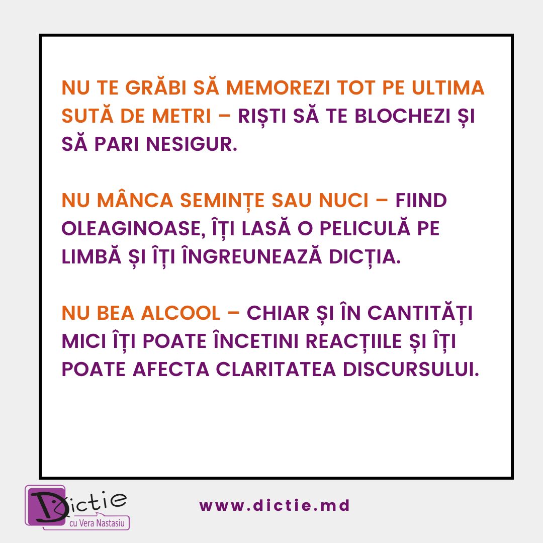 Dacă vrei să înveți cum să îți pregătești discursul ca un profesionist și cum să ai o prezență scenică memorabilă, te aștept la următorul Curs de dicție și discurs public. Detalii pe dictie.md.