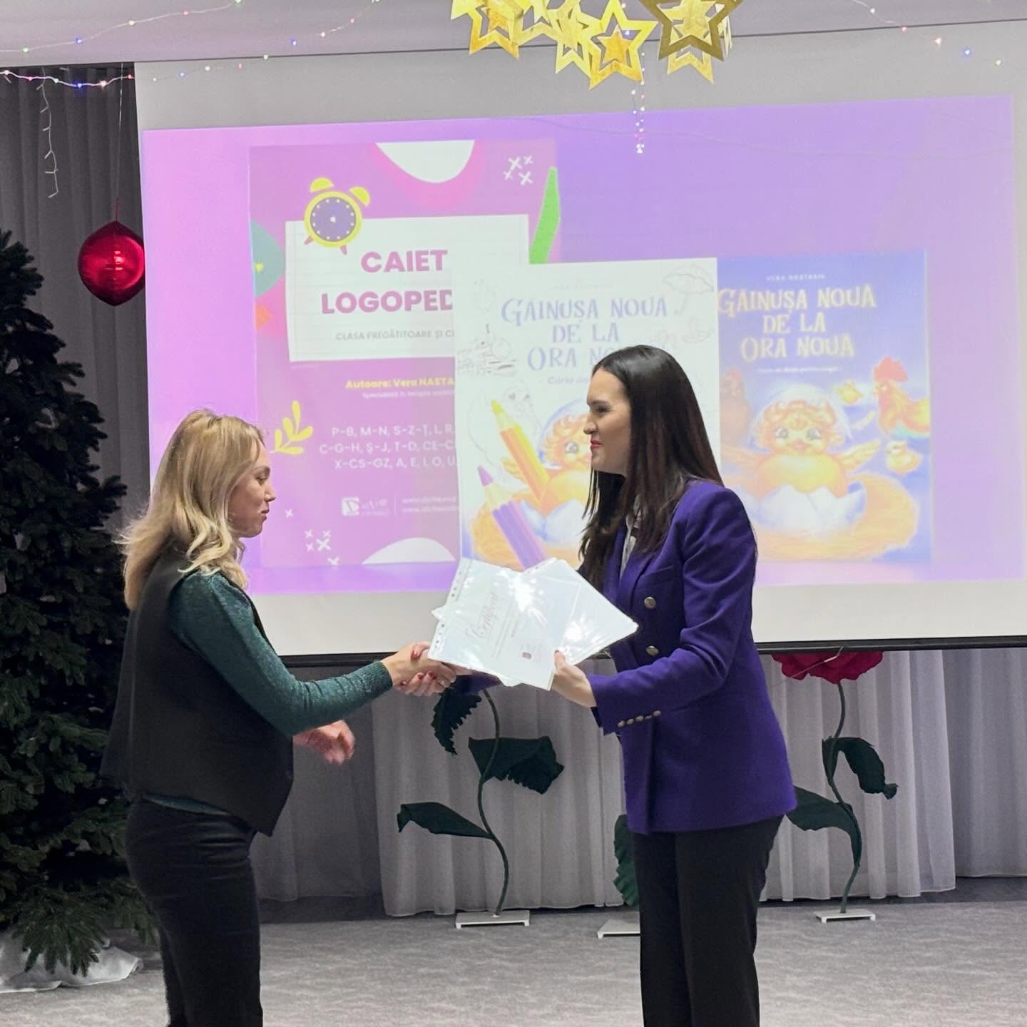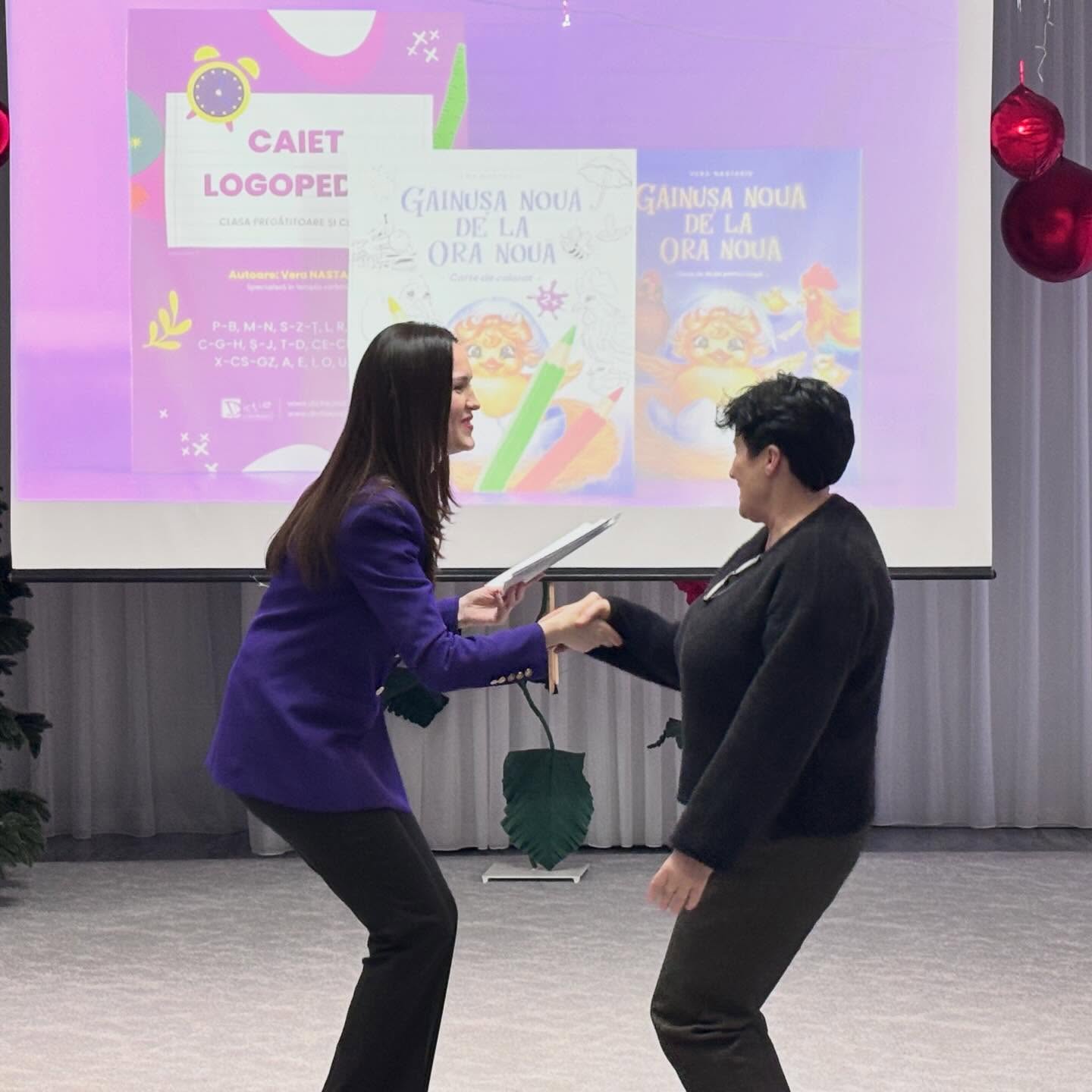 Un element esențial al atelierului l-a constituit integrarea în procesul educațional a setului complet al celor trei cărți semnate de Vera Nastasiu – Cartea de dicție, Manualul Caiet Logopedic și materialele complementare. Seturile au fost oferite fiecărei grupe, ca instrumente de lucru constante, menite să susțină activitatea zilnică a educatoarelor și dezvoltarea limbajului copiilor.