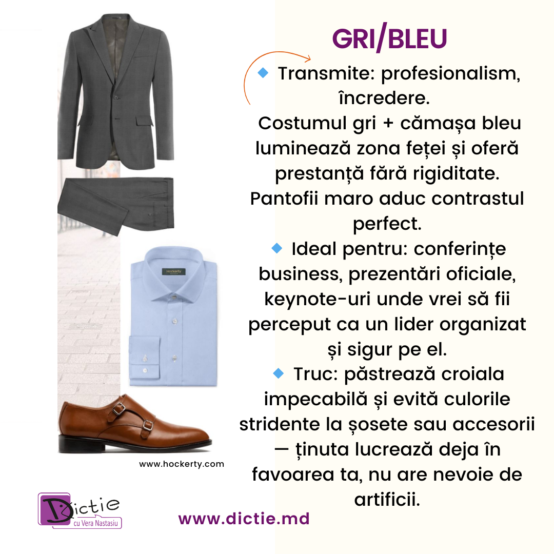 În comunicarea publică, primul impact vizual este uneori mai puternic decât primele 30 de secunde de discurs. Publicul te scanează instinctiv și își formează o impresie înainte să rostești cel dintâi cuvânt. Postura, expresia, felul în care ai ales să te îmbraci — toate transmit un mesaj care poate deschide sau închide uși.