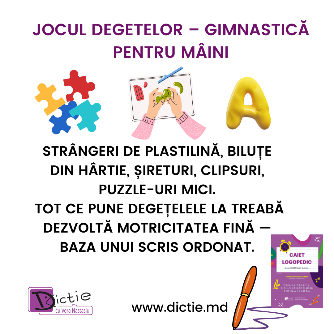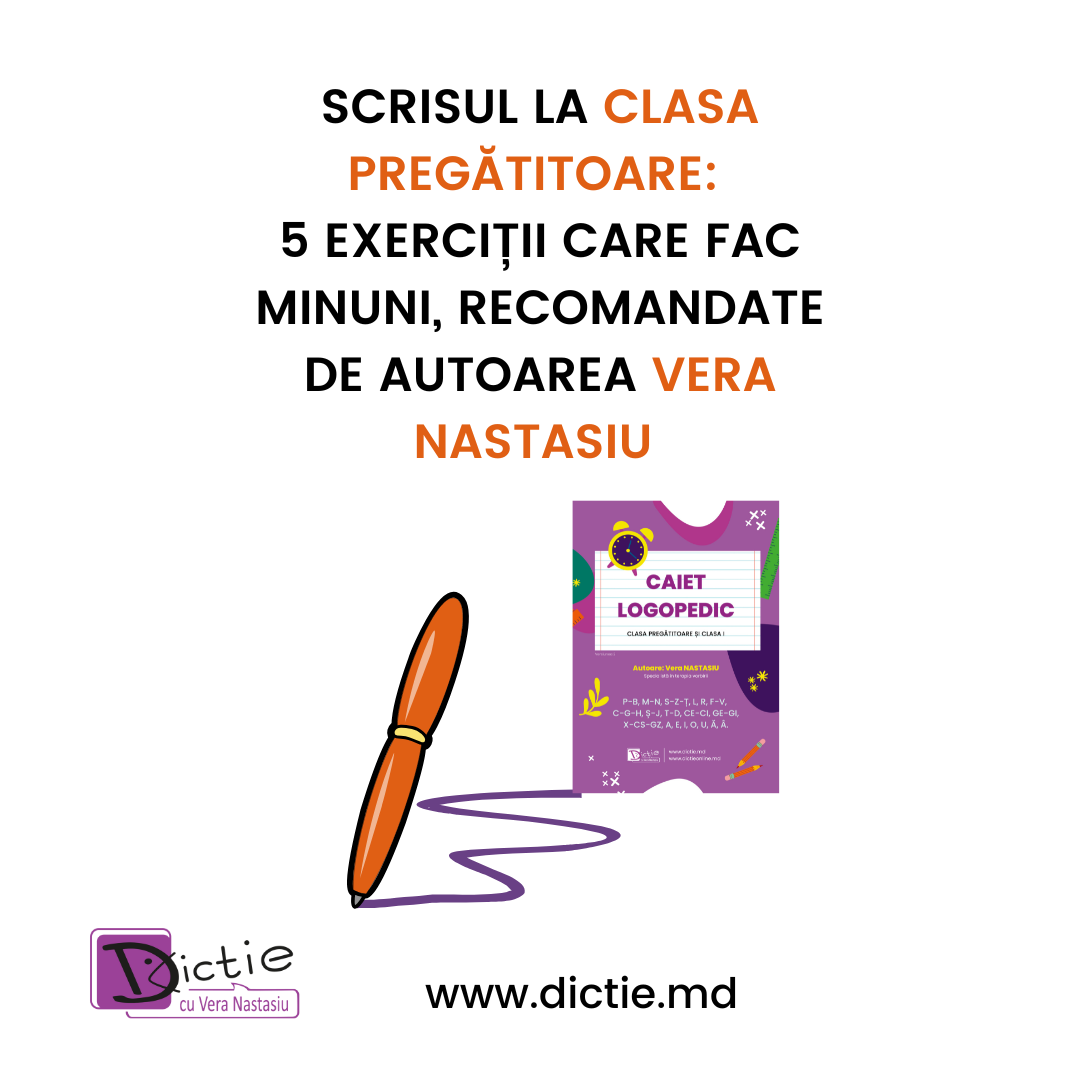 Toate aceste activități — plus zeci de exerciții practice, modele, recomandări și fișe — se regăsesc în manualul Caiet Logopedic, scris de Vera Nastasiu.