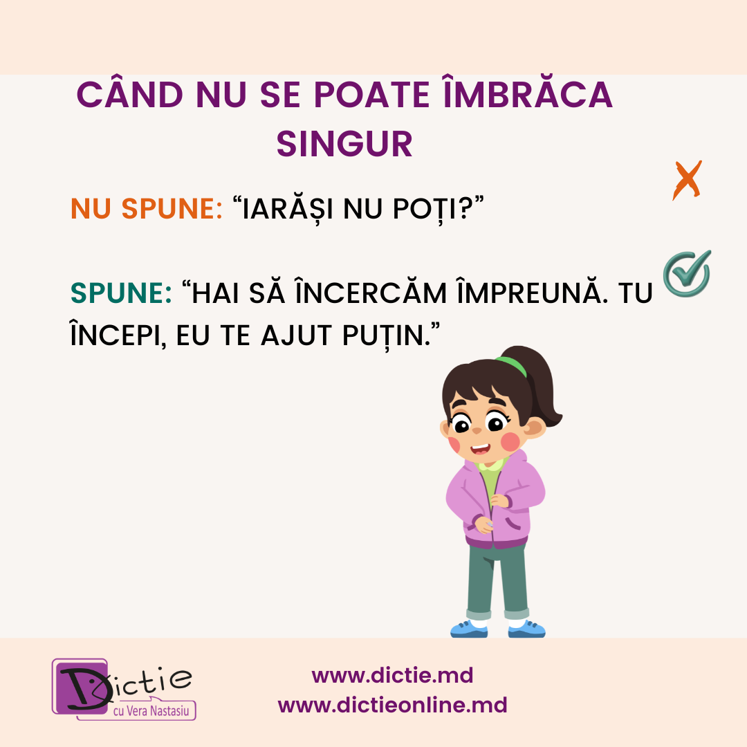 ✔️ Spune: „Hai să încercăm împreună. Tu începi, eu te ajut puțin.”