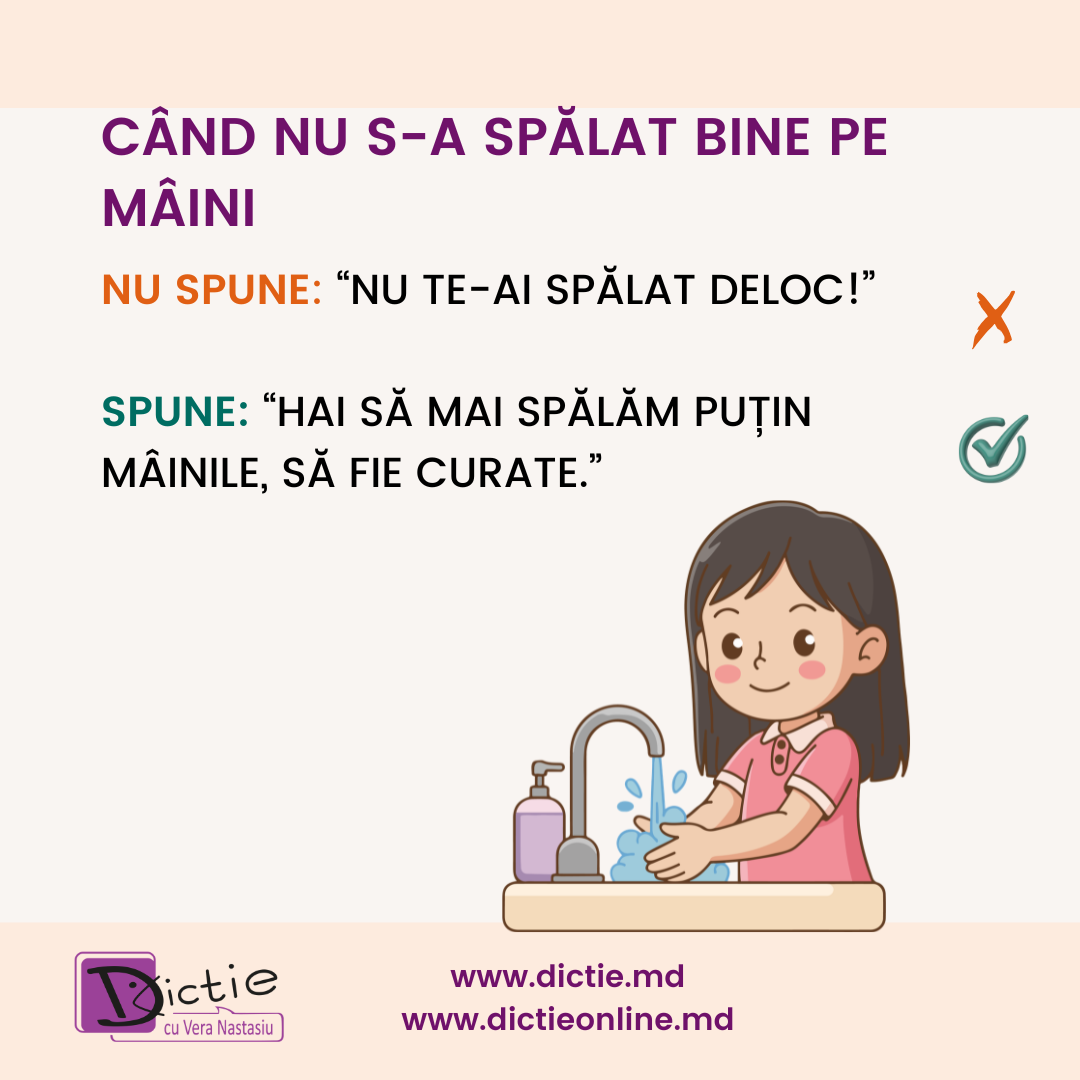 ❌ Nu spune: „Nu te-ai spălat deloc!”