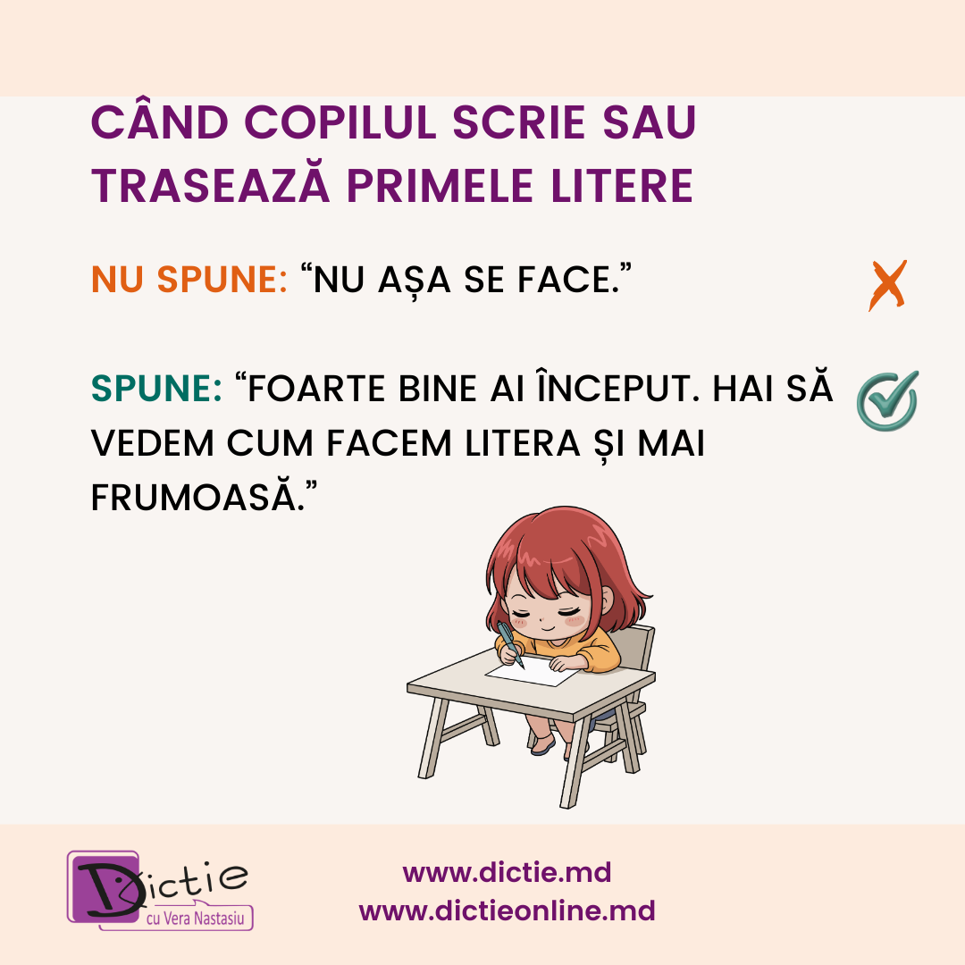 Această frază deschide imaginația. Copiii simt că au libertatea să creeze, nu doar să execute o sarcină.