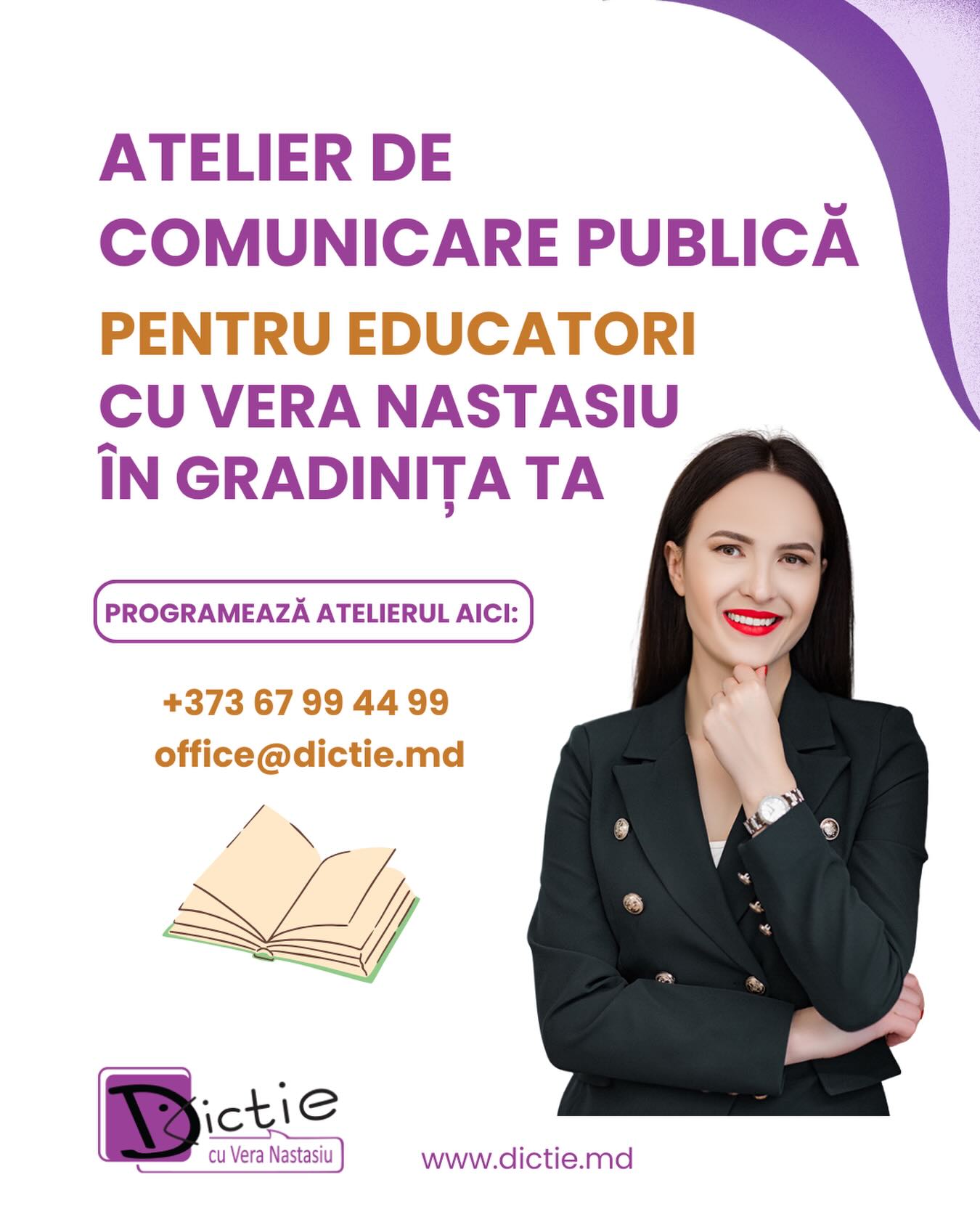 Pentru grădinițele care doresc să dezvolte aceste abilități în mod practic, am creat Atelierul de comunicare publică pentru educatoare – Dicție și Discurs Public – https://dictie.md/atelier-de-comunicare-publica-pentru-educatoare/. Este un training interactiv, bazat pe exerciții de dicție, tehnici de comunicare și aplicații concrete pe care educatoarele le pot folosi imediat în activitatea cu copiii.