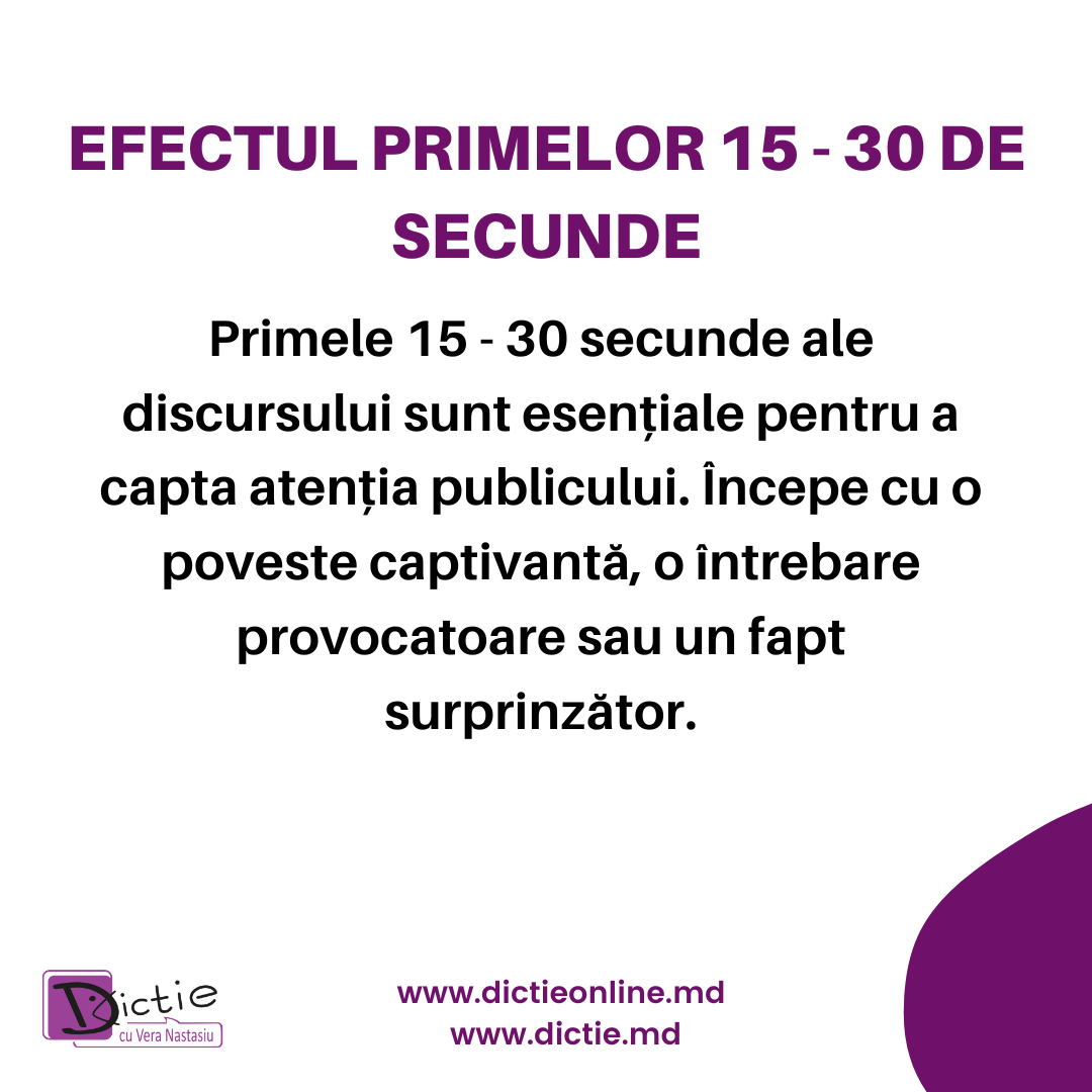 • Introducere (1 minut): Începe cu un „hook” pentru a capta atenția. Poate fi o poveste scurtă, un citat, o întrebare retorică sau un fapt surprinzător. Prezintă-ți pe scurt tema.