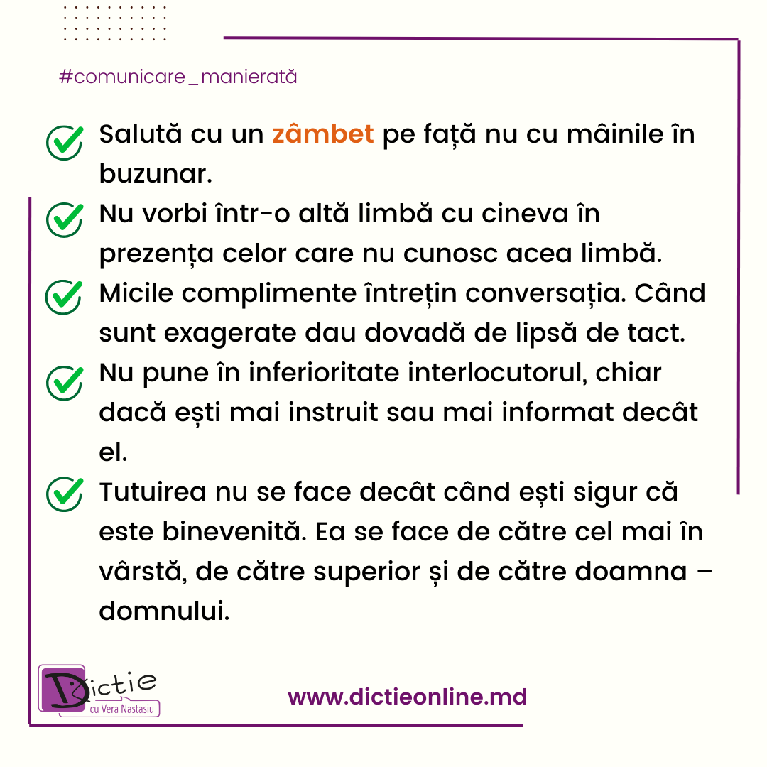 În general, manierele în comunicare se bazează pe respect, empatie și atenție la ceilalți.