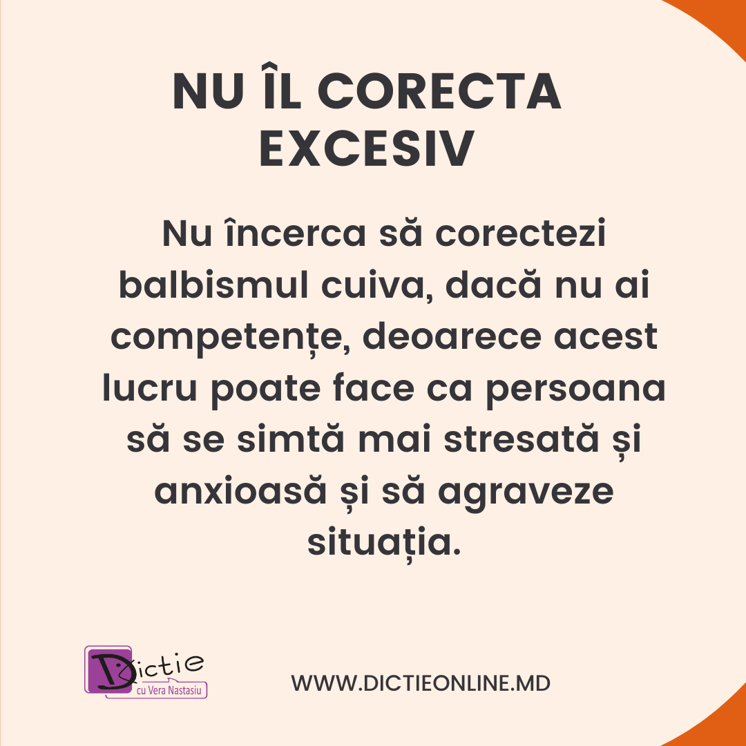1. Nu îl corecta: Nu încerca să corectezi balbismul cuiva, deoarece acest lucru poate face ca persoana să se simtă mai stresată și anxioasă. Corectarea poate să amplifice anxietatea și să agraveze situația.