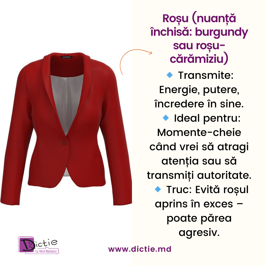 🔹 Truc: Evită roșul aprins în exces – poate părea agresiv.