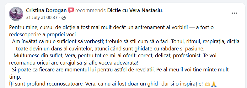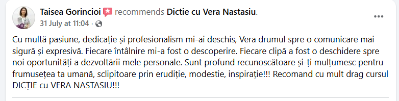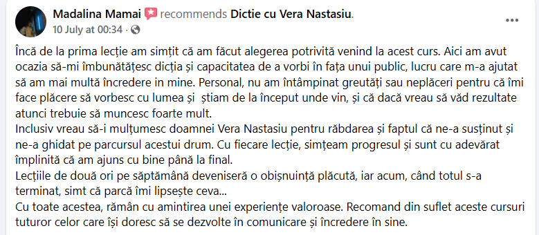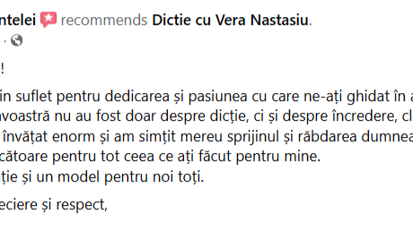 Pe 30 septembrie sărbătorim o călătorie începută cu visul unei femei curajoase – Vera Nastasiu – și transformată, pas cu pas, într-un proiect care a atins mii de voci, a schimbat destine și a dat curaj celor care și-au dorit să fie auziți. Prieteni, acest proiect a crescut odată cu fiecare copil care a rostit un exercițiu de dicție, cu fiecare adult care și-a învins teama și [...]