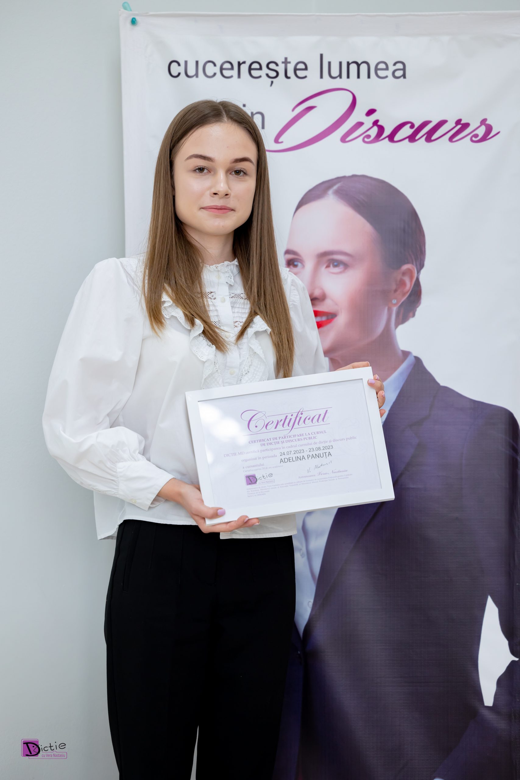 Adelina Panuța: Am descoperit dicție.md de pe internet și am decis să mă înscriu, deoarece aveam o dificultate în a vorbi în fața oamenilor și întimpinam greutăți în a mă exprima liber și convingător.