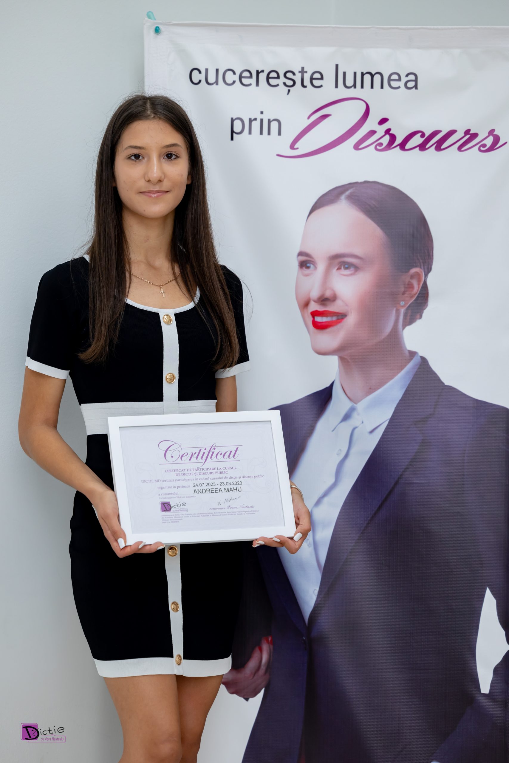 Andreea Inesa Mahu: Am descoperit cursul de dicție pe rețelele de socializare și am decis să mă înscriu, deoarece am vrut să scap de teamă de a vorbi în public, dar și de emoții.