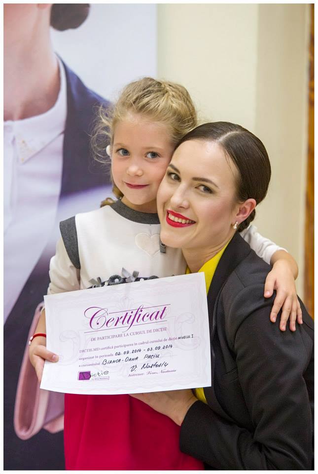 „Rezultate vizibile. Asta am obținut alături de Vera Nastasiu în cele 5 săptămâni. Un curs de dicție benefic pe care îl vom continua cu siguranță tot la Dicție.md. Vă mulțumim” – Adriana ( mama Biancăi)