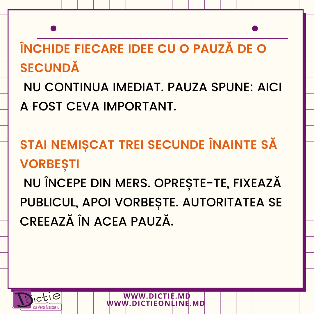 Un discurs public nu e o probă de viteză și nici o demonstrație de inteligență. Este un exercițiu de control. Când ritmul e prea grăbit, cuvintele nu mai au timp să se așeze. Când pauzele lipsesc, ideile se amestecă. Când prezența e nesigură, mesajul pierde din greutate, chiar dacă este corect.