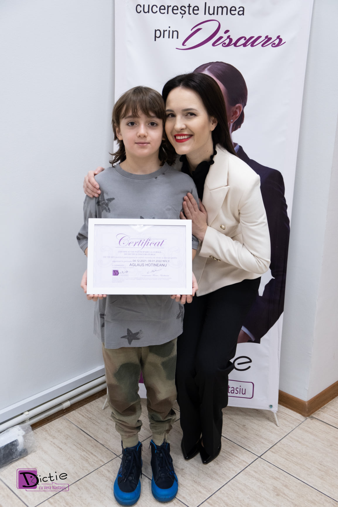 Cristina Hotineanu::  Noi mai făcusem un curs de dicție la altcineva, dar a fost cu zero rezultat. Alegerea Verei Nastasiu a fost o provocare și pentru noi, am vrut să vedem dacă problema a fost în copil sau în cursul precedent. Chiar de la prima sesiune cu antrenoarea Vera Nastasiu am văzut rezultate și am înțeles ca de aceasta dată am făcut alegerea corectă.