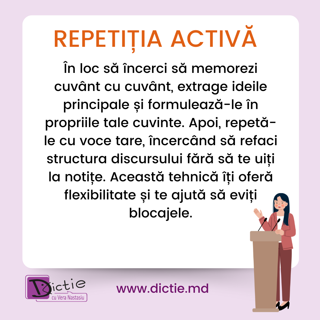 💡 Bonus: Nu te stresa dacă uiți un cuvânt! Publicul nu știe exact ce ai pregătit, așa că improvizează cu încredere.
