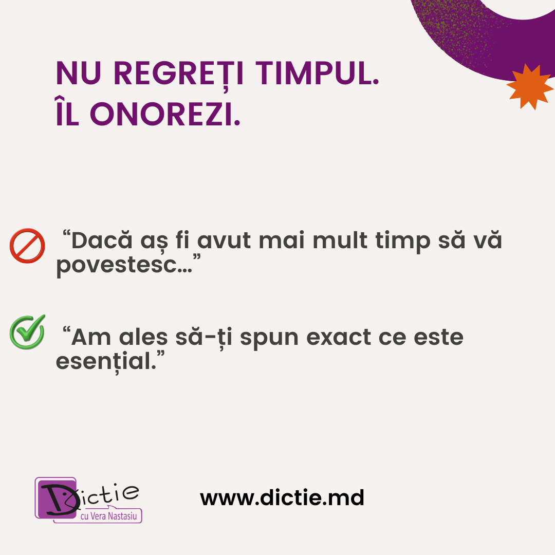 👉 Spune esențialul. Restul nu contează.