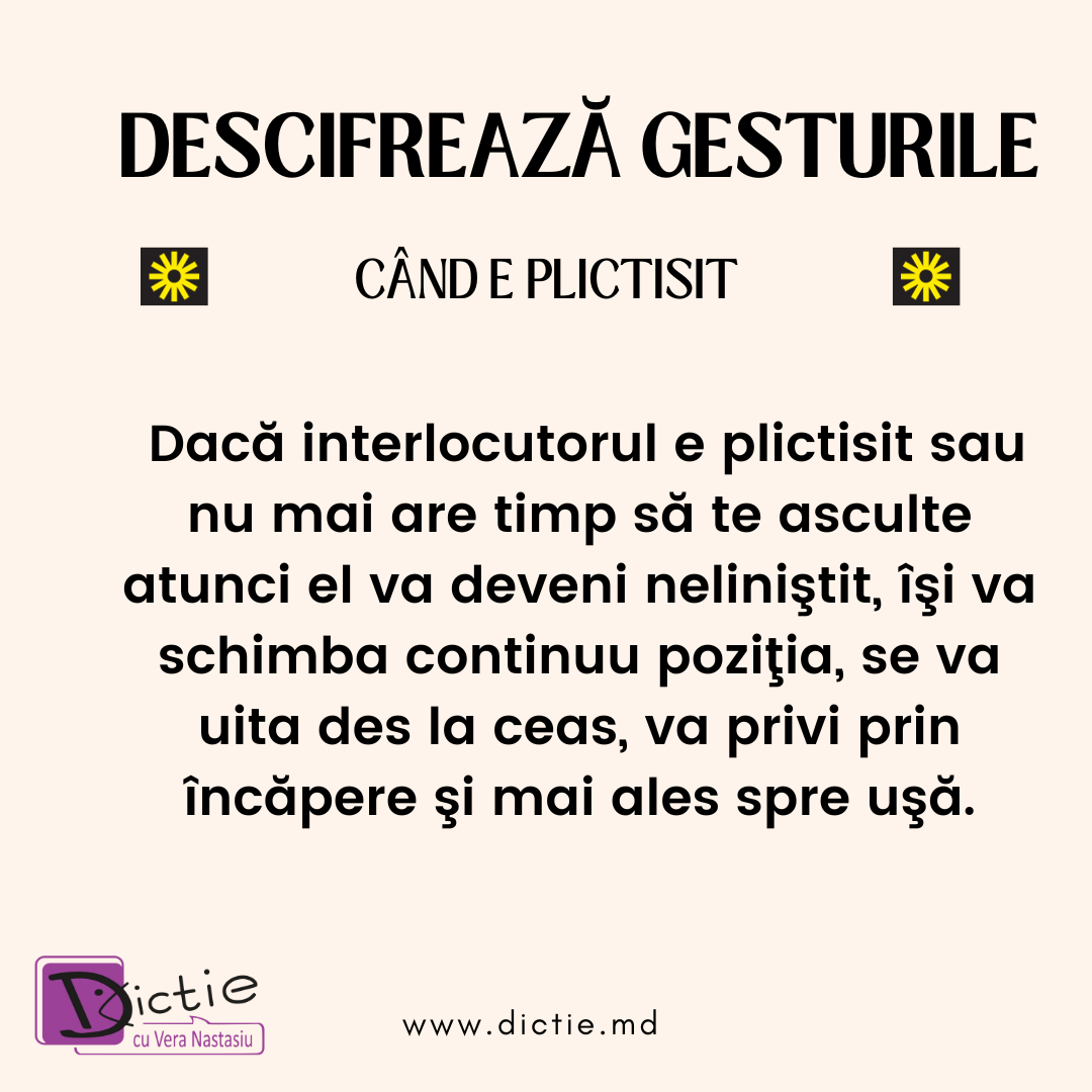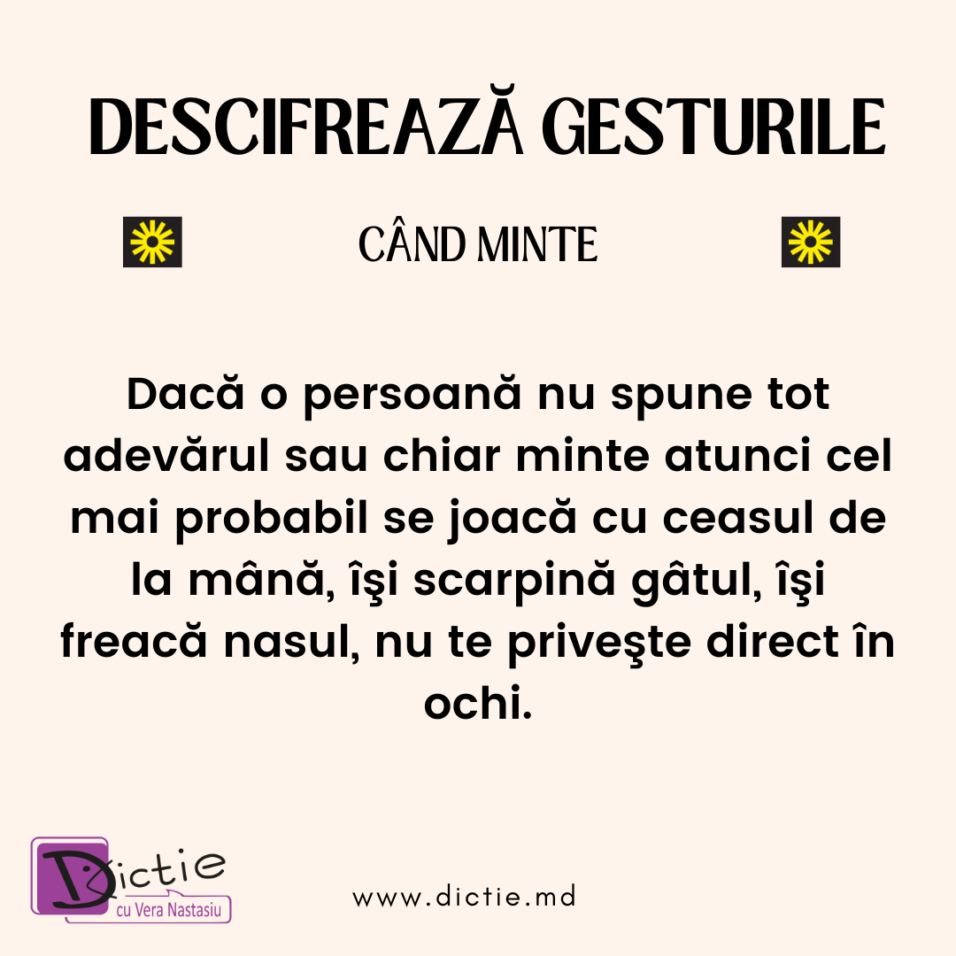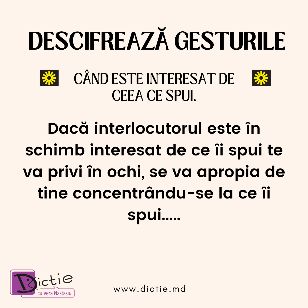 Astăzi, Dicție cu Vera Nastasiu te invită să descifrezi gesturile oamenilor în fața cărora vorbești.