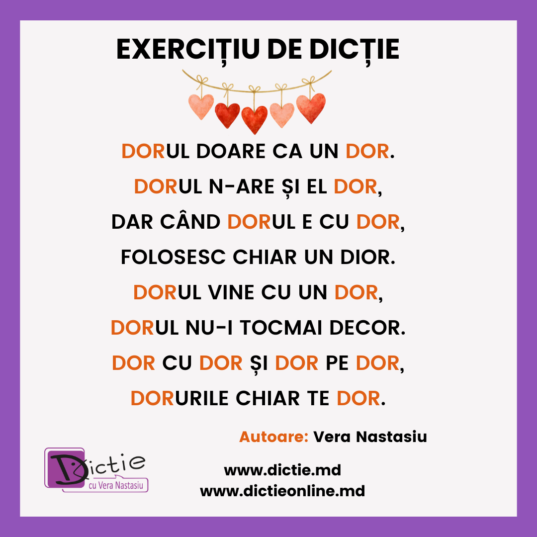 De aceea, Vera Nastasiu a creat un exercițiu de dicție dedicat acestui cuvânt atât de românesc și atât de profund. Pentru că, dincolo de emoție, contează și felul în care rostești ceea ce simți. O voce sigură, un cuvânt articulat clar, o respirație așezată pot transforma un simplu „mi-e dor” într-un mesaj care ajunge direct la inimă.