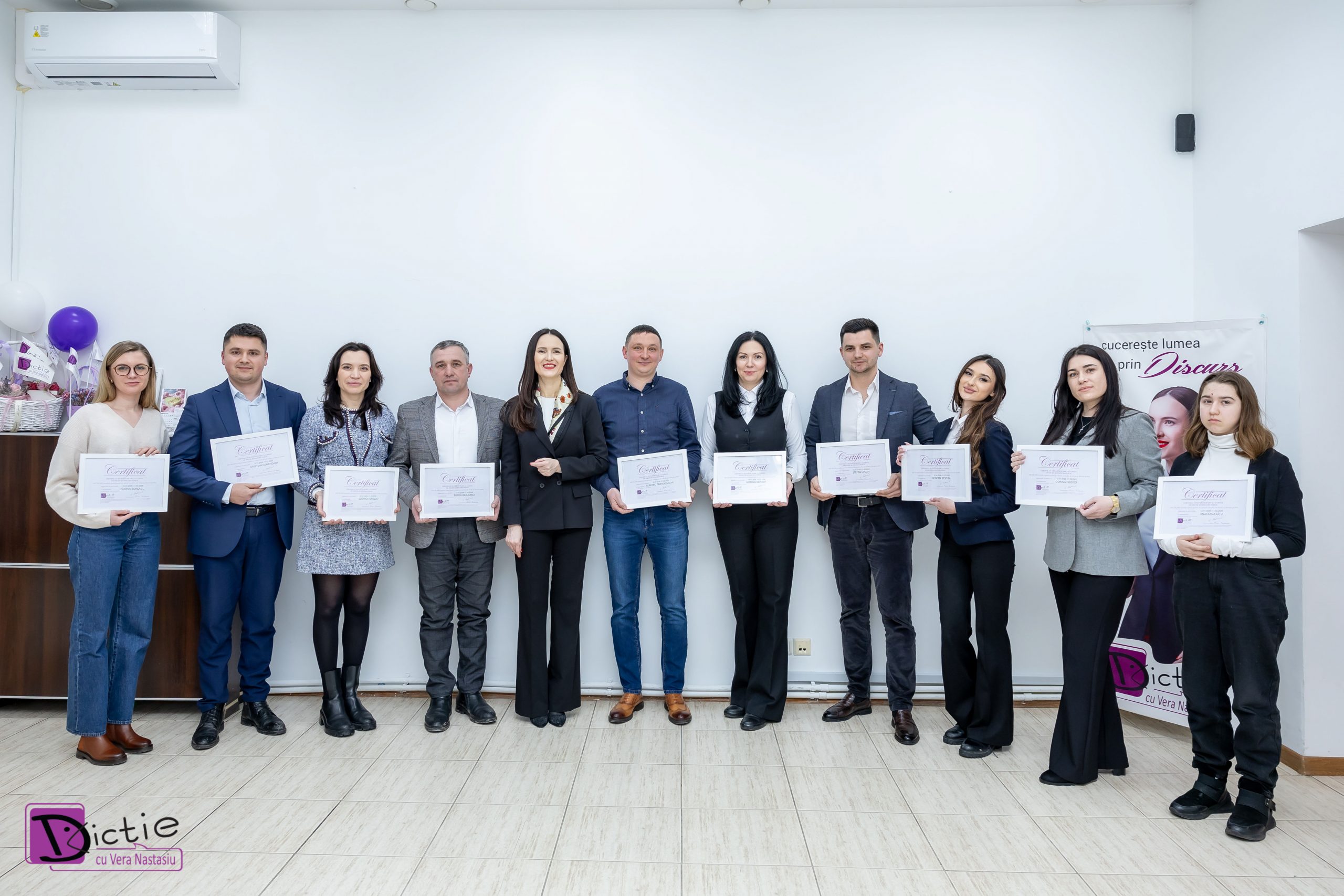 Felicitări tuturor pentru determinare, disciplină și deschiderea de a crește. Transformarea voastră este dovada că succesul în comunicare nu este un talent rezervat câtorva, ci rezultatul unui antrenament serios și al unui ghidaj potrivit.