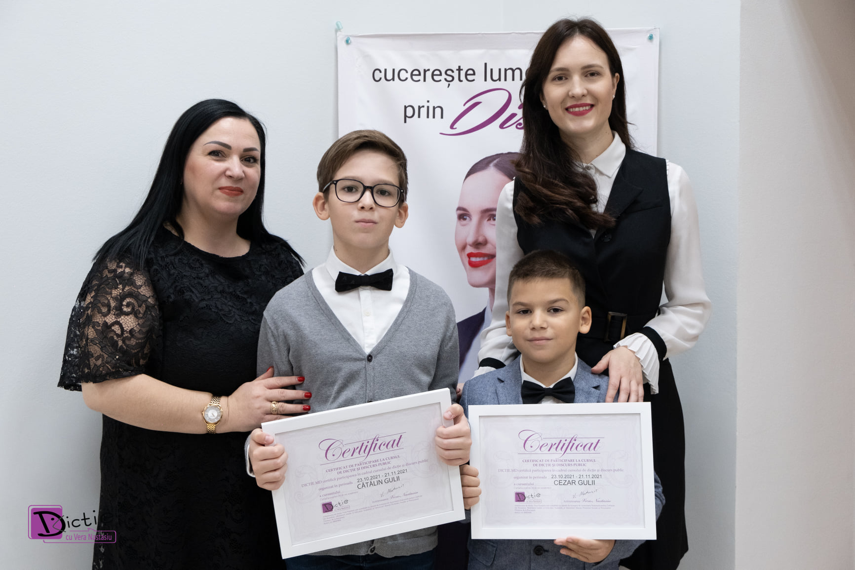 Pentru că ne sunt dragi, pentru că atât ei, cât și părinții care i-au adus la instruirile cu Vera Nastasiu, fac parte din familia noastră și pentru că îi apreciem pe fiecare pentru efortul, pasiunea și munca pe care le-au depus în cele cinci săptămâni de dicție și discurs public, dorim să vă facem cunoștință cu minunații noștri cursanți.