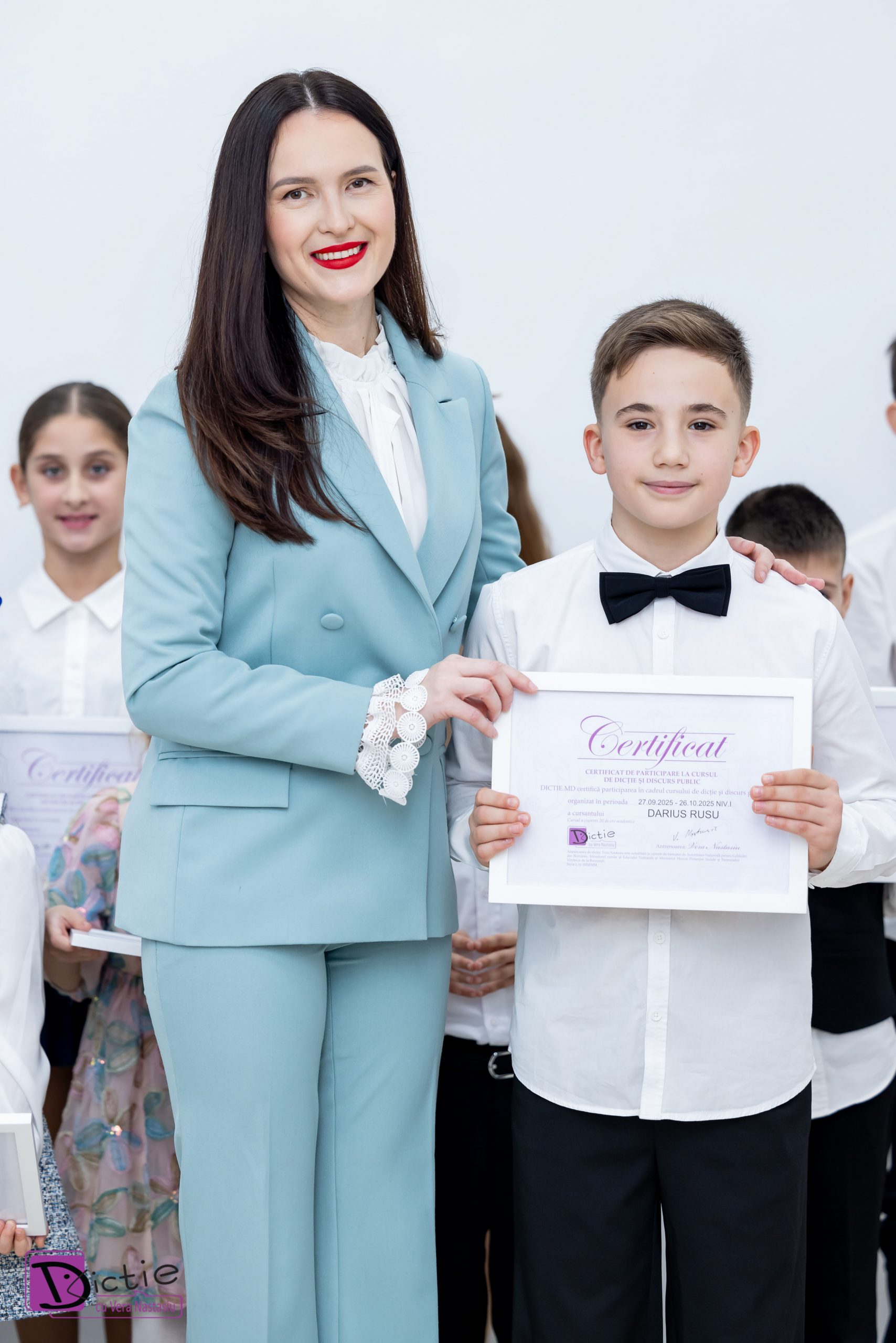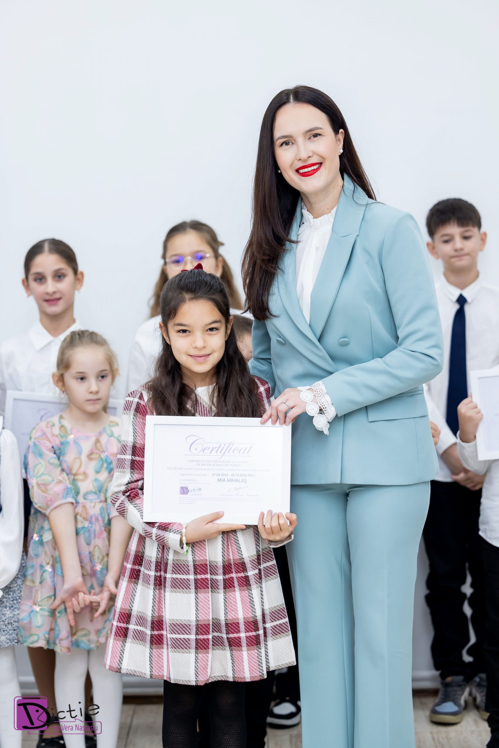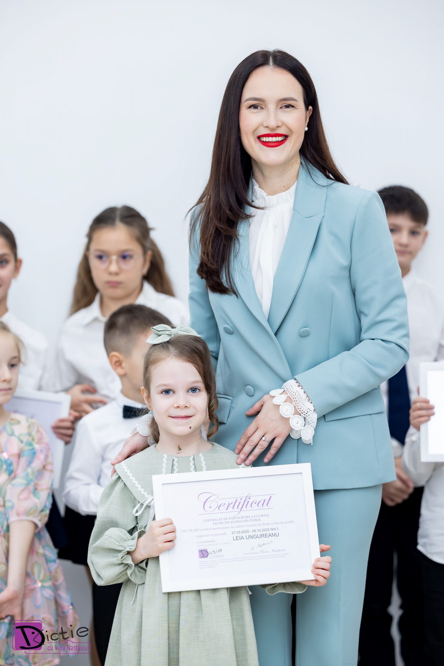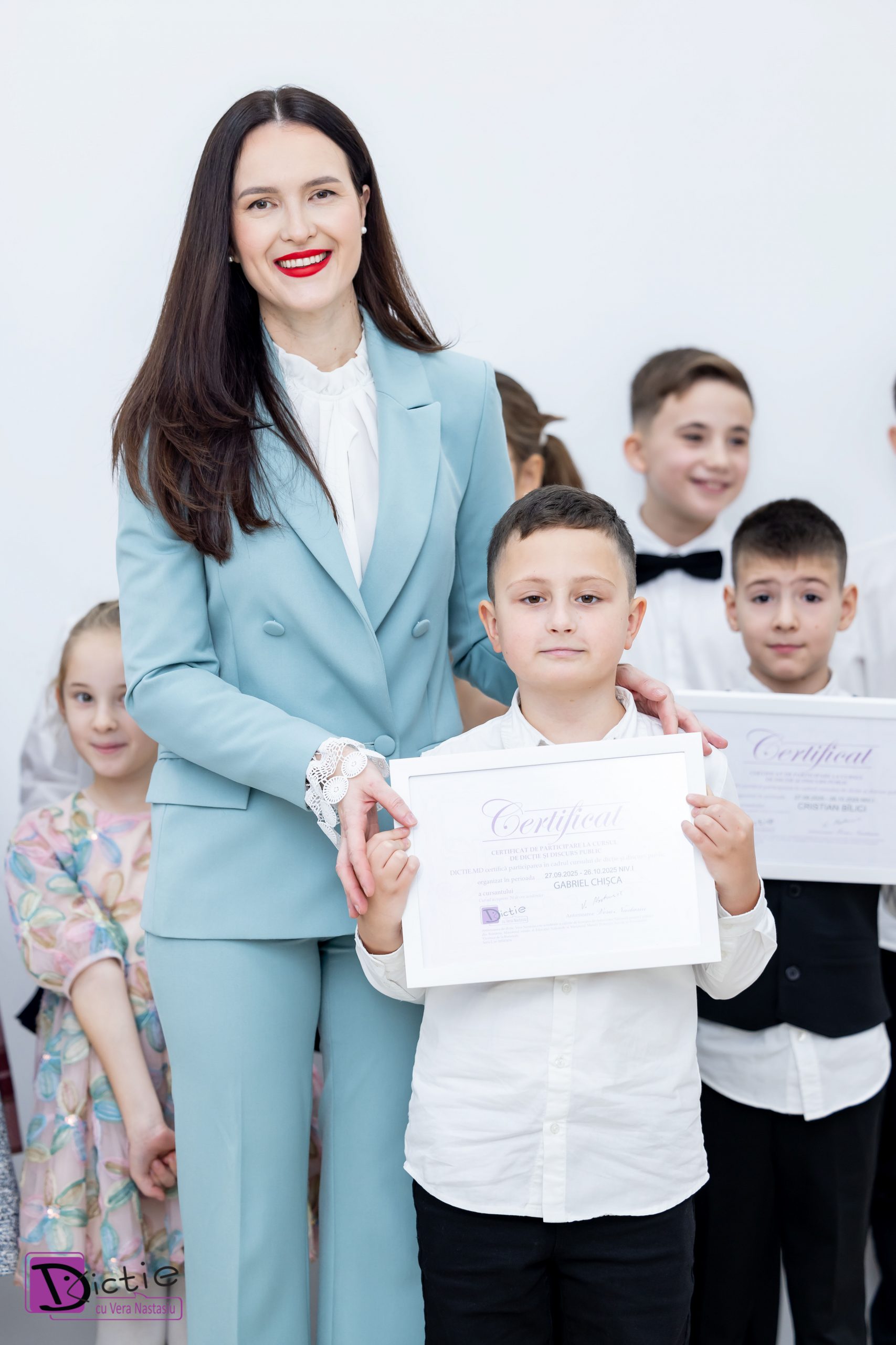 Vera Nastasiu a lucrat individual cu fiecare copil. Voci diferite, vârste diferite, ritmuri diferite — dar un singur obiectiv: să îi ajute să prindă curaj, să își descopere vocea interioară și să învețe arta de a comunica frumos, cu dicție, cu energie, cu sens.