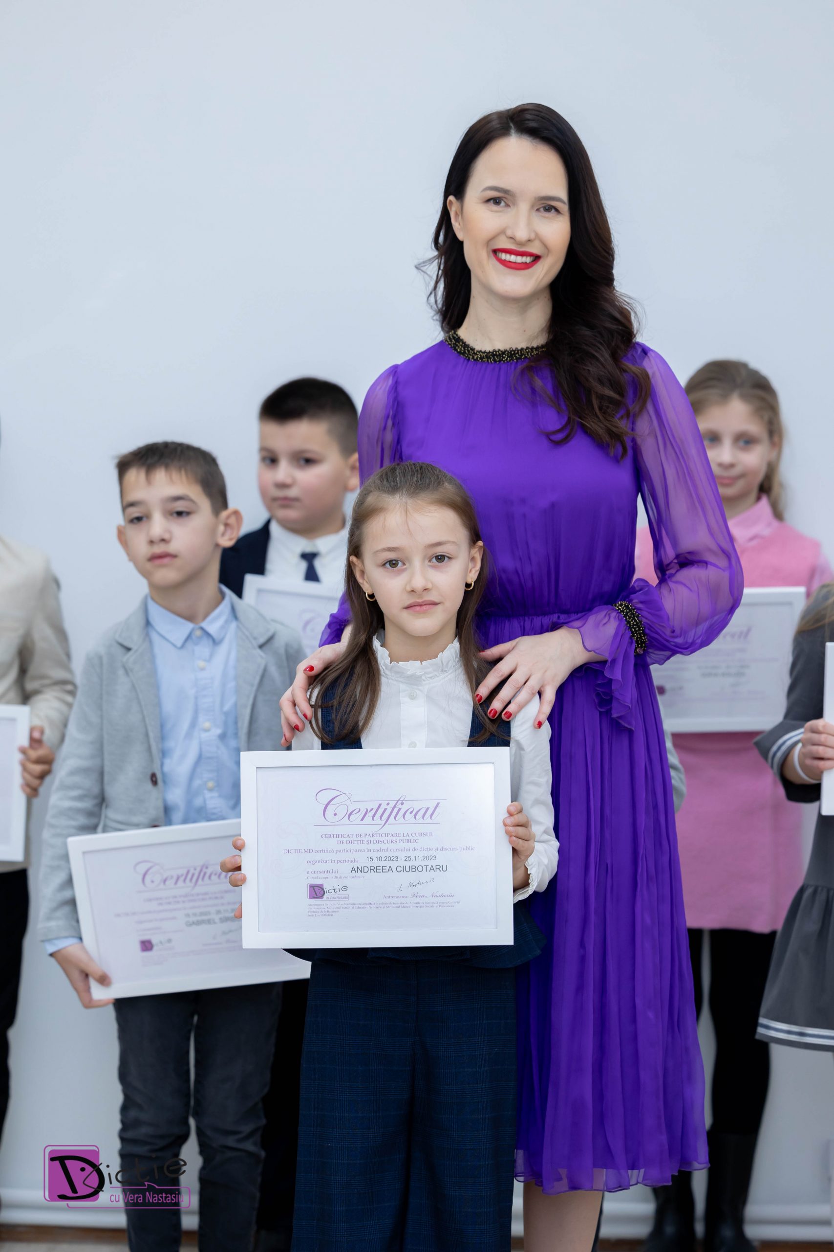 Timp de 5 săptămâni, alături de Vera Nastasiu la Dicție.md, au avut parte de o experiență captivantă și ne-am bucurat la examenul final să vedem cum acești copii talentați și-au depășit propriile limite, transformând cuvintele în adevărate bijuterii de comunicare.