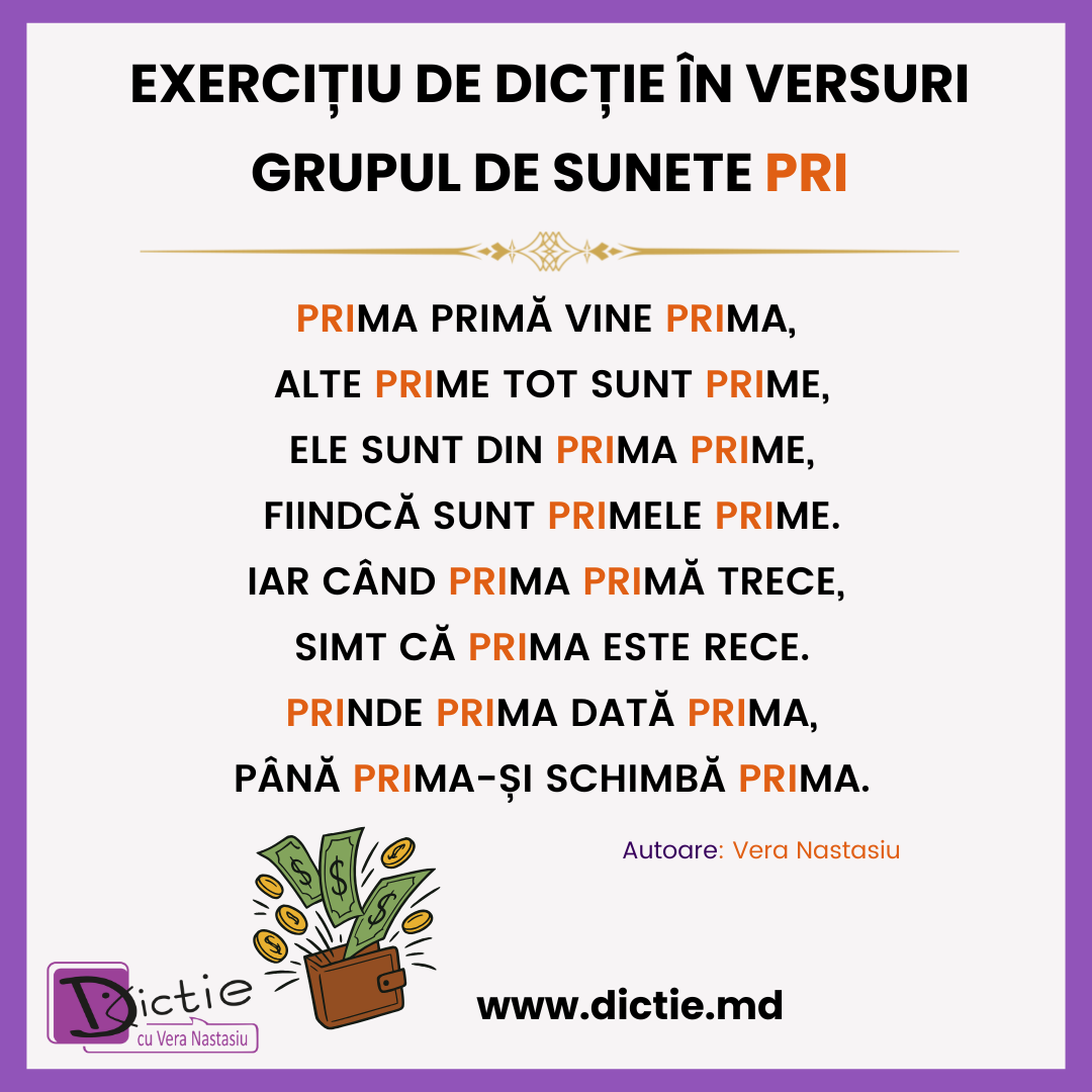 Ei bine, tot despre „prima primă” vorbim și astăzi, dar într-un mod jucăuș, cu un exercițiu de dicție creat de autoarea Vera Nastasiu. Un joc de sunete, un dans de „pri-uri” care îți pune zâmbet pe buze și limba la treabă.