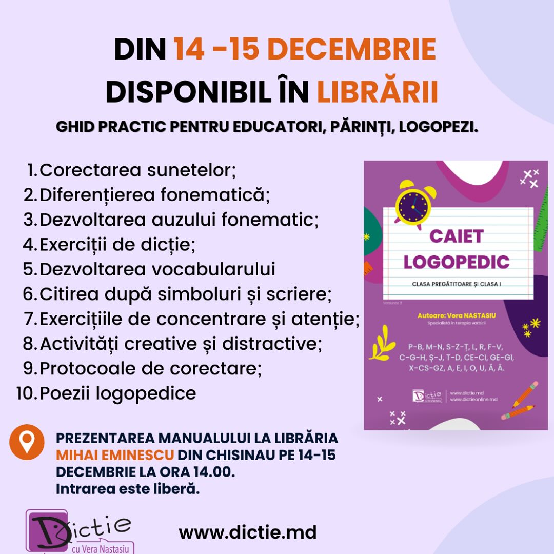 Găsești manualul “Caiet logopedic” în librării din 14 Decembrie.