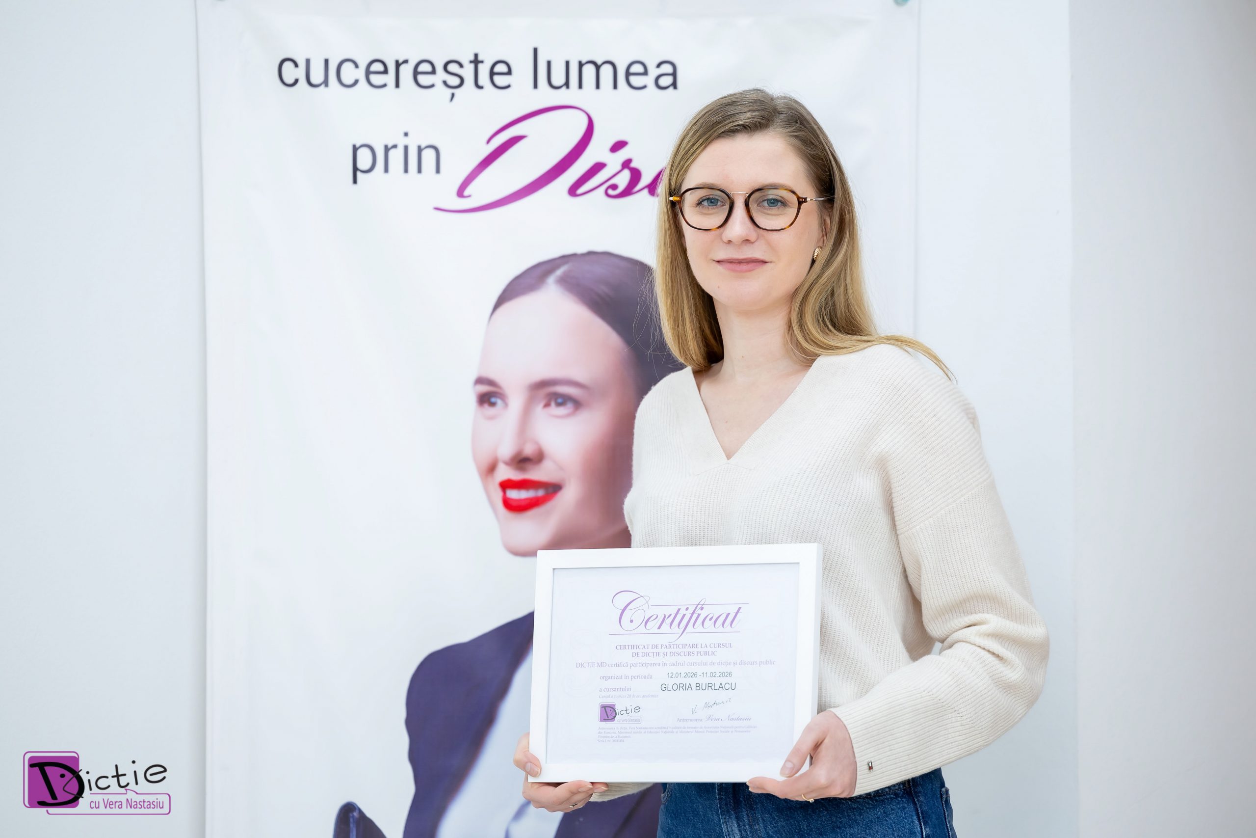 Îți mulțumim, dragă Gloria, pentru efortul, dăruirea și implicarea ta constantă. Evoluția ta este rezultatul muncii tale serioase. Ești un speaker de nota 10.