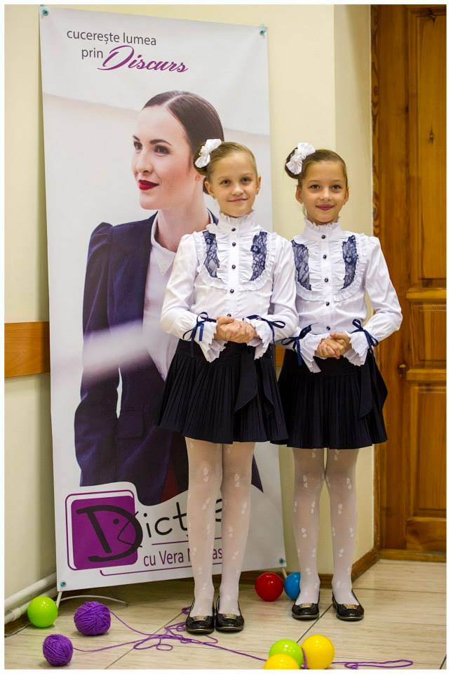“Vedeam cum fetele așteptau cu nerăbdare fiecare oră de dicție și cu cât entuziasm îmi povesteau acasă cele învățate. Exercițiile de dicție, chiar dacă la început necesitau mai multă atenție, acum sunt preferatele fetițelor. Am observat cum Julieta este mai atentă la intonație, iar Nicoleta – la pronunțare. E o performanță importantă în zilele noastre, când copii sunt mai preocupați de jocurile pe tablete. Suntem recunoscatori antrenorului și echipei de ceea ce au oferit copiilor noștri prin acest curs de dicție.” – Manuela Căpățină ( mama fetițelor)
