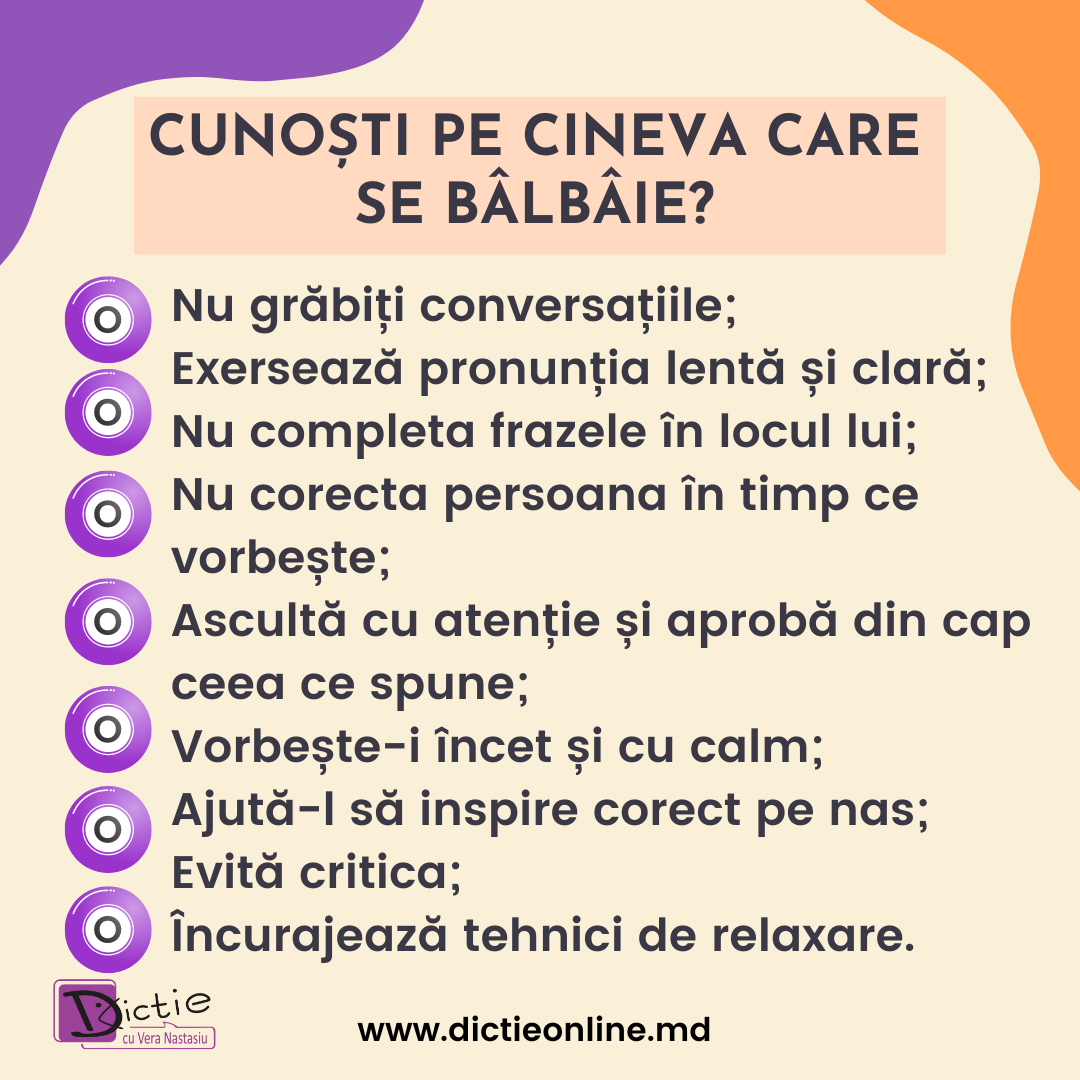 Prin aceste măsuri, poți crea un mediu de susținere și încredere care poate ajuta persoana balbaită să se simtă mai confortabil și să își îmbunătățească abilitățile de comunicare.