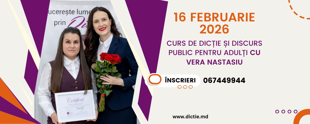 Da, poți cuceri oamenii prin discurs. Știu cât de inconfortabil este acolo pe scenă, când toată lumea te radiografiază. Dar suntem o echipă dacă vii la Dicție.md.