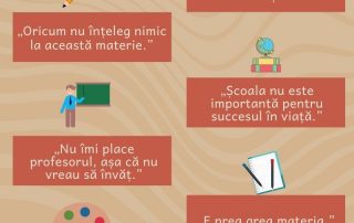 Vacanță de vara se apropie de final încet, iar preocupările legate de școală încep să își facă apariția treptat. Cum îi putem ajută pe copii să fie motivați să învețe? Începând cu scuzele sau convingerile iraționale care îi împiedică să depună efort când vine vorba de învățare. Scuze frecvente care îi împiedică pe copii să învețe: „Când vin de la școală, trebuie doar să mă relaxez.” Desigur, [...]