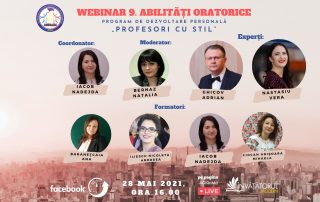 Asociația Generala a Învățătorilor din România, filiala din Republica Moldova, condusă de Doamna Dr. Mariana Marin a invitat-o pe antrenoarea de dicție și discurs public, Vera Nastasiu, doctoradă la Teoria Generală a Educației în calitate de expert într-un nou webinar. În cadrul asociației, se desfășoară un program de dezvoltare personală pentru cadrele didactice PROFESORI CU STIL. De această data, webinarul a avut genericul “Abilități Oratorice”. Alături de [...]