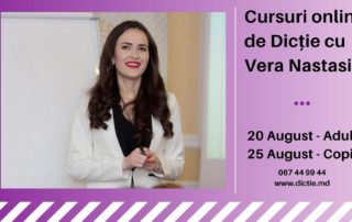 Noi cursuri ONLINE de dicție cu Vera Nastasiu: 20 August – Curs pentru Adulți; 25 August – Curs pentru Copii