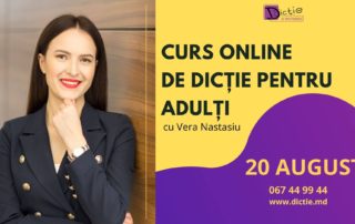 20 August – Curs ONLINE de DICȚIE ȘI DISCURS PUBLIC pentru adulți și adolescenți. Aplicația ZOOM. Cucerește lumea prin discurs, alături de antrenoarea de dicție, Vera Nastasiu, #Instruiri moderate de #Vera #Nastasiu, antrenoare acreditată ANC București pe poziția de formator, licențiată în științele educației, masterandă în comunicare și relații publice, SNSPA BUCUREȘTI. Vera Nastasiu este jurnalistă de 11 ani, și de 7 ani este fondatoarea Dicție.md în [...]