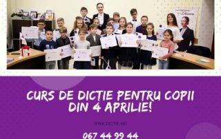 Din 4 APRILIE #începem un NOU CURS de DICȚIE pentru COPII. Instruirile au loc doar sâmbătă și duminică de la 10.00 - 12.00 timp de 5 săptămâni. Adresa: București, 83 între str.Puskin și B.Bodoni. Vârsta 6- 12 ani. #Instruiri moderate de #Vera #Nastasiu, antrenoare acreditată ANC București pe poziția de formator, licențiată în științele educației, masterandă în comunicare și relații publice, SNSPA BUCUREȘTI. Ea este jurnalistă de [...]