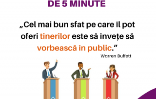Astăzi, sărbătorim succesul celor 15 cursanți instruiți de Vera Nastasiu la Dicție și Discurs Public între 15 Iulie – 15 August. Cinci săptămâni formidabile în care am învățat cum putem depăși emoțiile, cum putem comunica persuasiv în public, care sunt structurile de discurs și elementele care definesc un comunicator. Începând cu dicția, vocabularul, exprimarea, gesturile, până la interacțiunea cu public și captarea atenției într-o formă autentică și [...]
