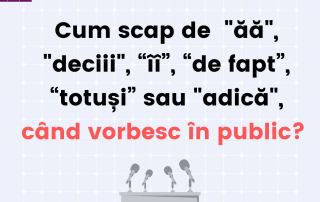 Scăparea de umpluturile verbale, cum ar fi "uh", "ăă", "deciii", "adica" și altele, este un obiectiv important pentru a deveni un vorbitor mai clar și mai convingător. Iată câteva sfaturi pentru a te ajuta să scapi de aceste umpluturi verbale: Conștientizare: Primul pas este să devii conștient de umpluturile verbale pe care le folosești. Înregistrează-te în timp ce vorbești în public sau în conversații obișnuite. Ascultă înregistrările [...]