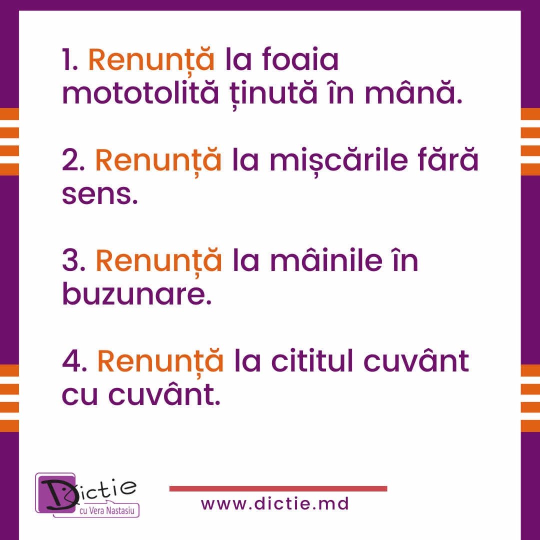 Când vorbești prea repede, oamenii nu mai înțeleg, ci aleargă după sens. Încetinește. O pauză poate face mai mult decât un paragraf întreg.