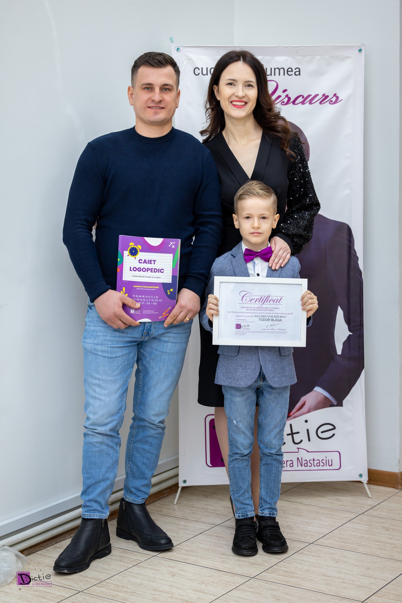 Tatiana Blaga: Am hotărât să-l înscriu și la cursul avansat de Dicție pentru a mai prinde la curaj, să fie mai degajat când vorbește și să-și aprofundeze cunoștințele în oratorie.