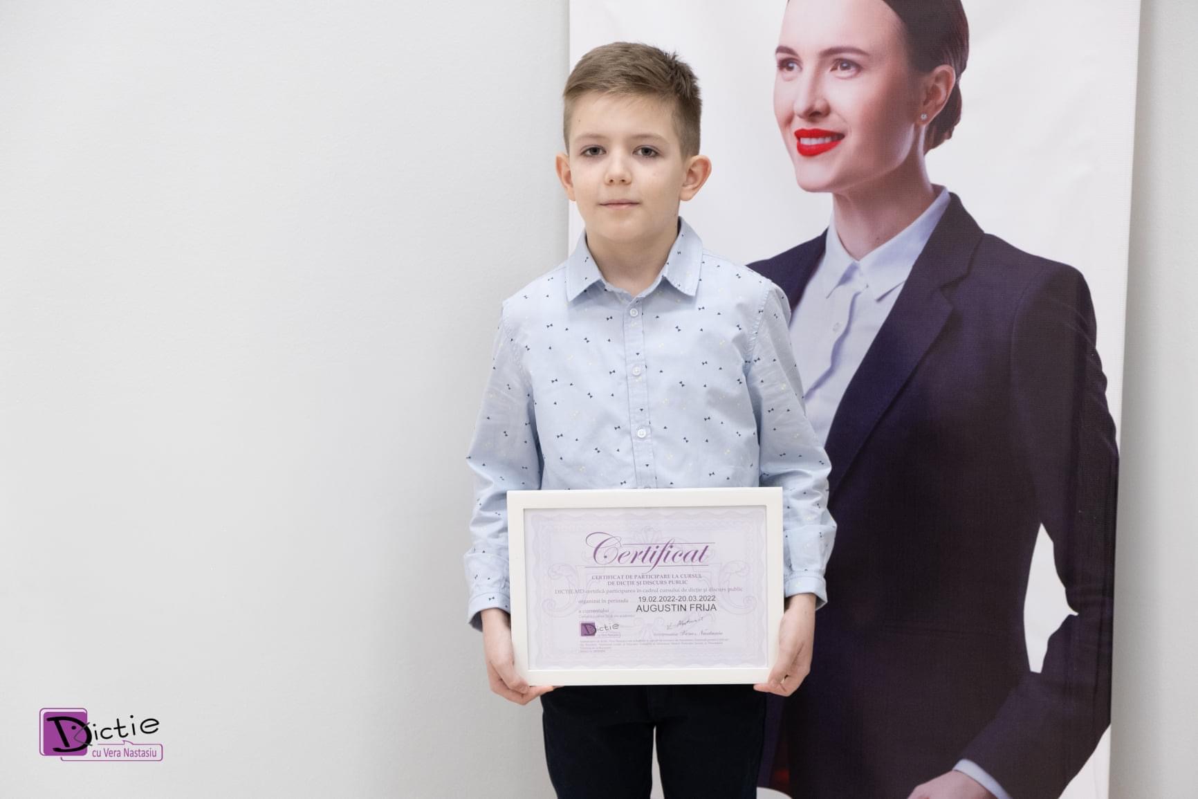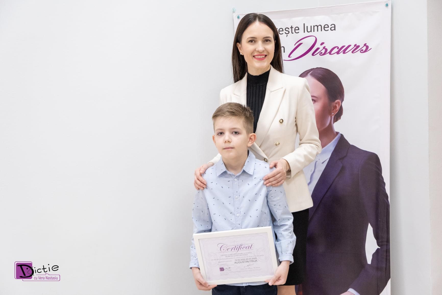 Vesel, curios, ager și foarte prietenos. Acestea sunt calitățile care îl descriu perfect pe cursantul nostru Augustin Frija. Pe parcursul celor 5 săptămâni de curs, Augustin a dat dovadă  de seriozitate și multă dorință de a excela. Mama lui, Tatiana Frija a acceptat să vorbească cu noi, pentru a ne spune care au fost schimbările pe care le-a văzut la fiul ei, după finalizare cursului de Dicție și Discurs Public cu Vera Nastasiu.