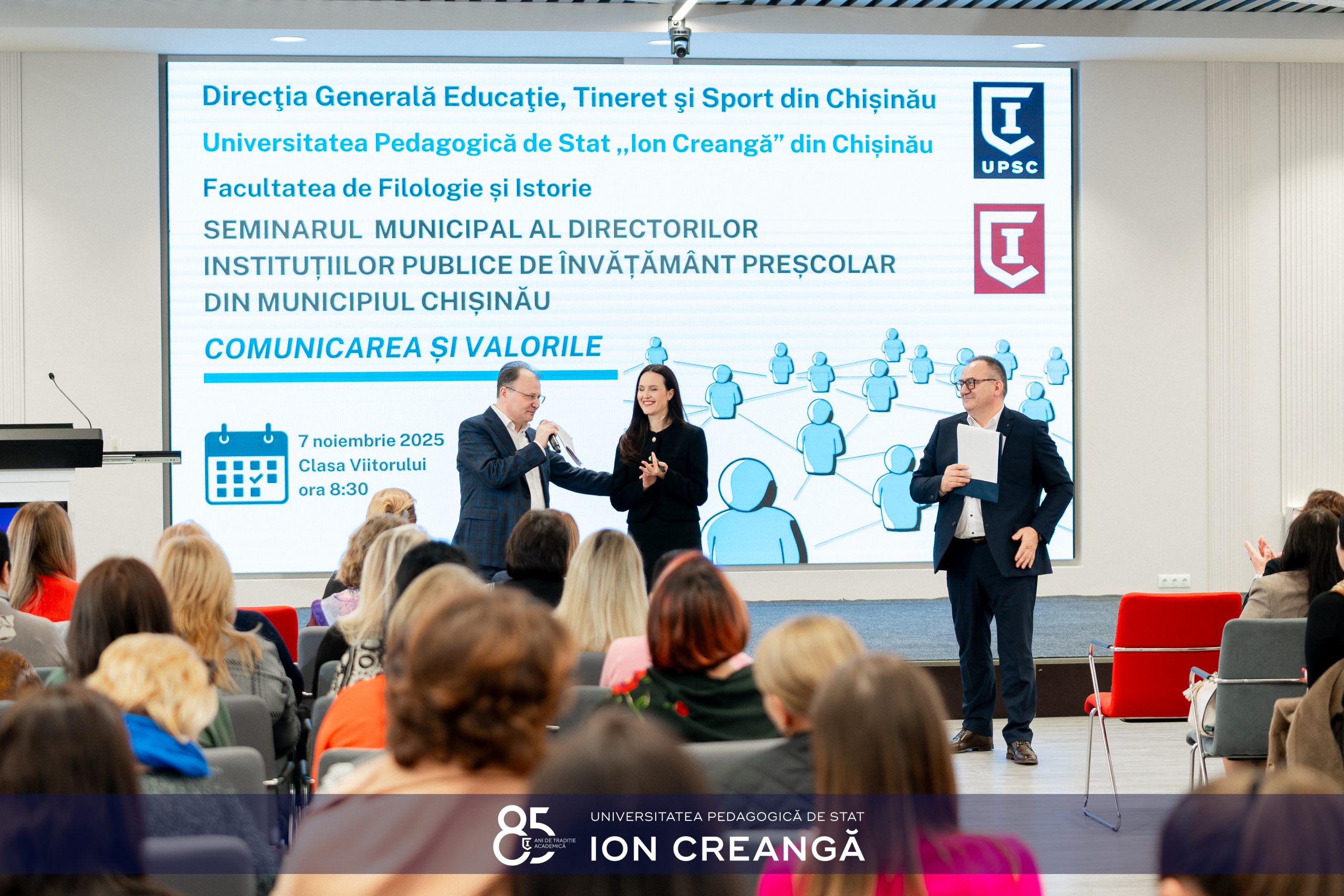 Primăria Municipiului Chișinău, prin Direcția Generală Educație, Tineret și Sport (DGETS), în parteneriat cu Universitatea Pedagogică de Stat „Ion Creangă” și Centrul Național de Inovații Digitale în Educație „Clasa Viitorului”, a organizat Seminarul Municipal „Comunicarea și Valorile”, un eveniment dedicat directorilor instituțiilor publice de învățământ preșcolar din capitală.