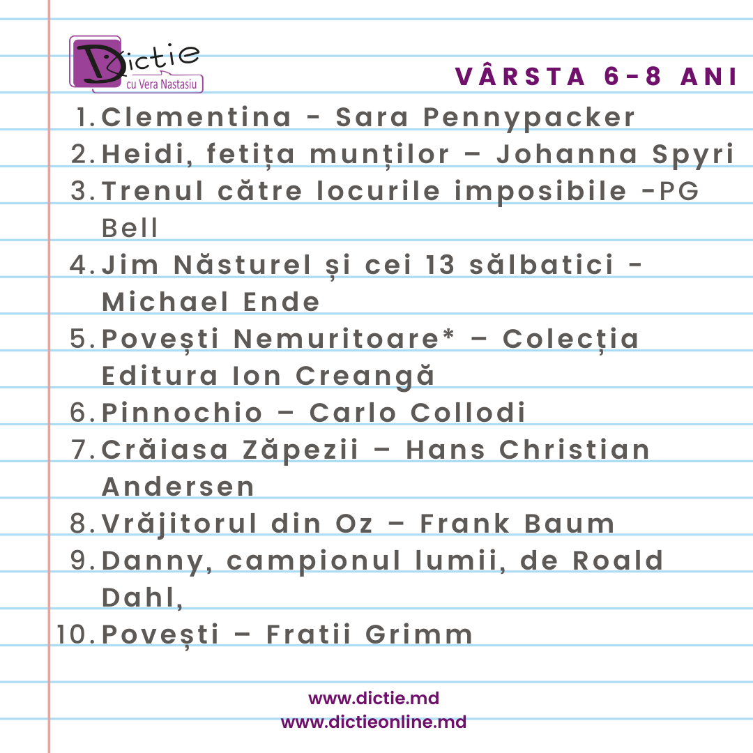 Antrenoarea de dicție și discurs public, Vera Nastasiu recomandă 30 de cărți, pe categorii de vârstă pentru vara lui 2023, tuturor copiilor.